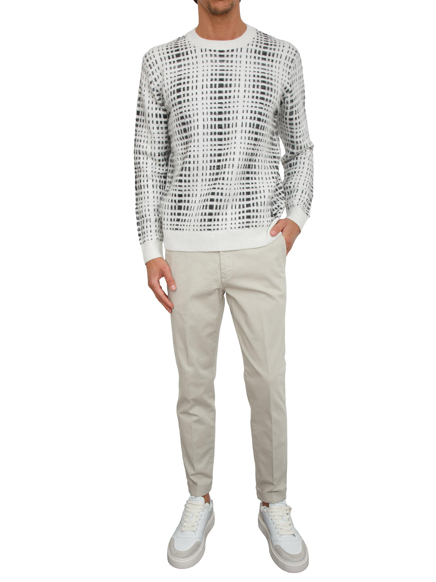 Brand: LIU JOPantaloni uomo Liu Jo realizzati in cotone stretch con piega stirata tasche laterali e tasche a filetto dietro. Design con risvolto sul fondo e chiusura con bottone e zip coperta. Il modello è alto 1.90m e indossa la taglia 48.