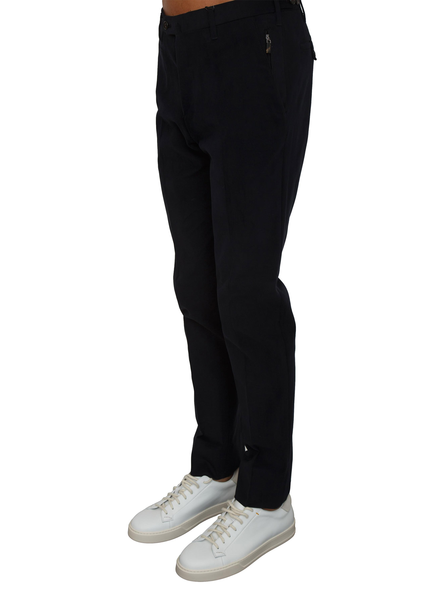 Brand: CORNELIANIPantaloni Corneliani realizzati in misto cotone con vestibilità regular. Design pulito e raffinato, caratterizzato da tasche laterali e a filett, passanti in vita e chiusura con zip nascosta e bottone. Il modello è alto 1.90m e indossa la taglia 48.