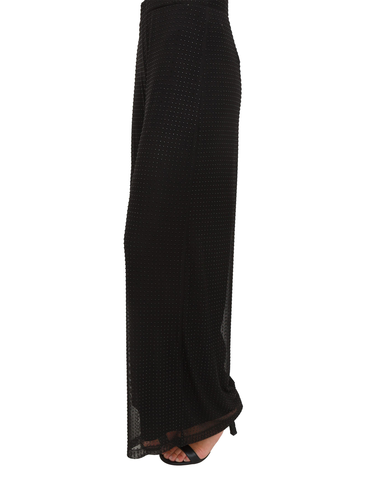 Pantaloni fluidi Marella in jersey di tulle nero con strass all over