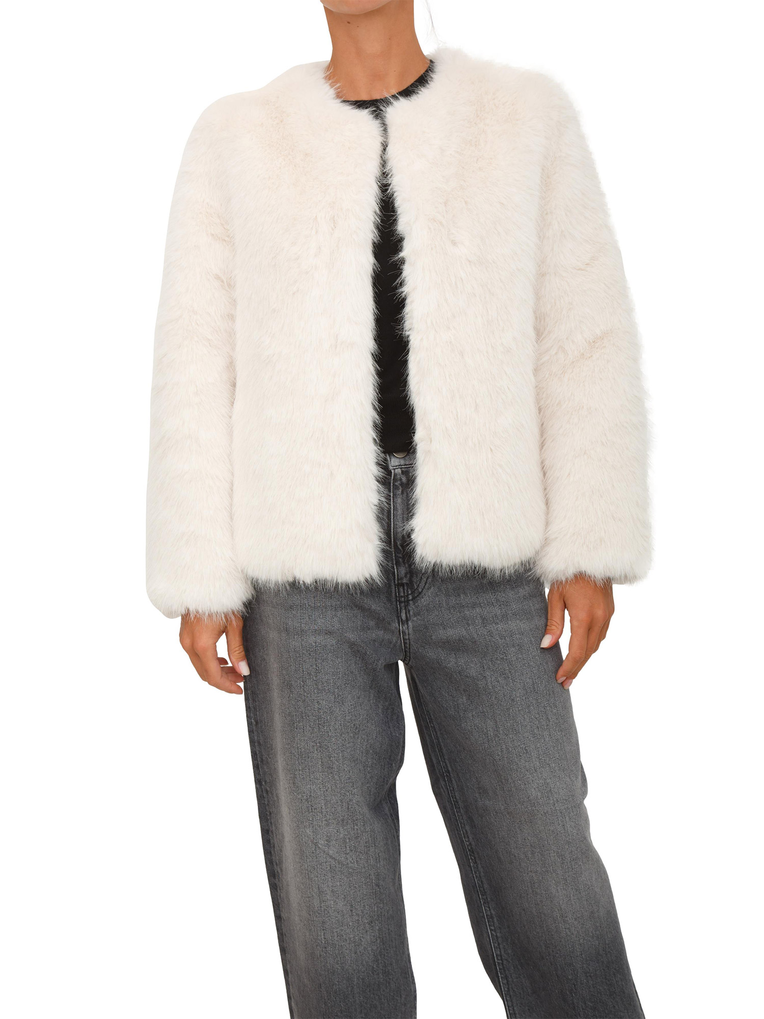 Brand: IBLUESPelliccia iBlues in soffice tessuto dalla linea morbida e scollo tondo. Modello foderato a maniche lunghe con chiusura con ganci e tasche laterali. Super fluffy: tessuto effetto nuvola per definire un nuovo concetto di comfort. La modella è alta 1.72 e indossa la taglia 42.
