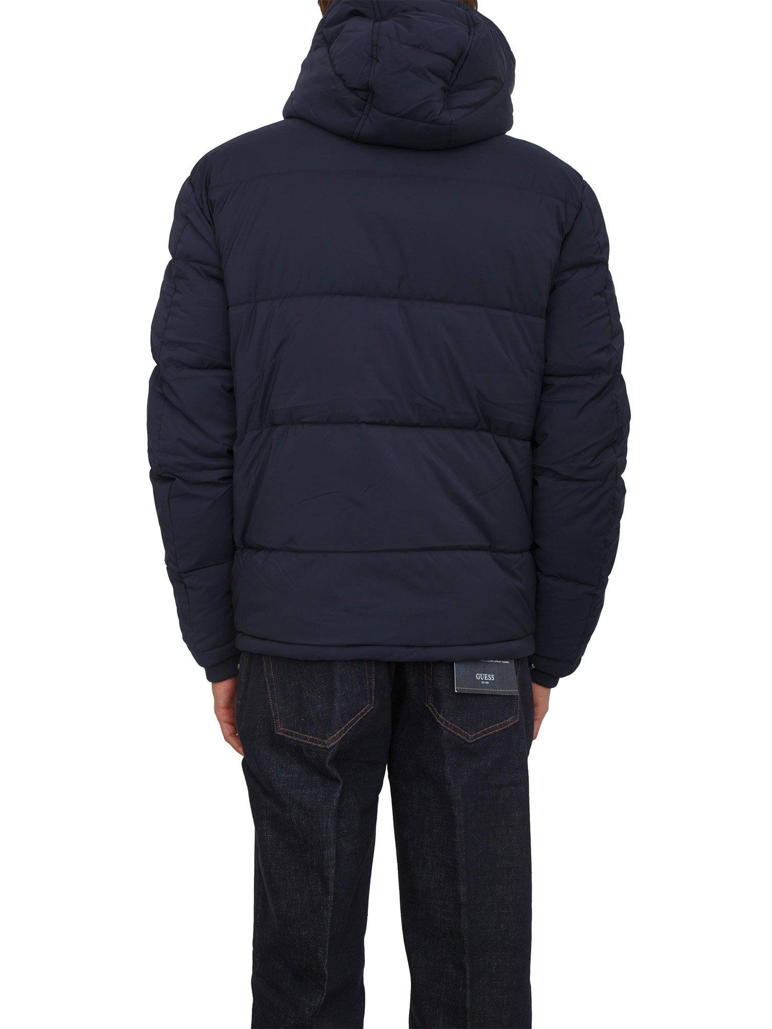 Brand: GUESS JEANSPiumino Guess Jeans uomo realizzato in nylon con imbottitura sintetica e vestibilità regular. Cappuccio rimovibile e tasche laterali con chiusura zip. Il modello è alto 1.90m e indossa la taglia M.