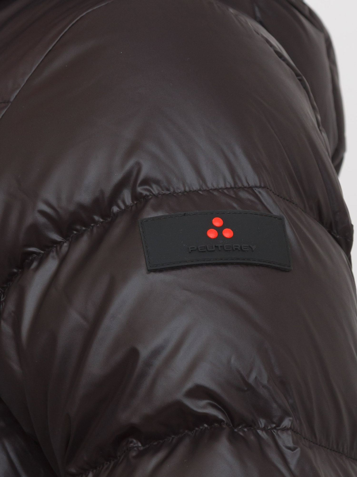 Brand: PEUTEREYPiumino Peuterey donna realizzato in nylon lucido idrorepellente con ampie trapunte e imbottitura in piuma naturale. Dotato di doppio cappuccio, uno interno fisso e uno esterno removibile e collo alto con bottoni. Full zip a doppio cursore e ampie tasche laterali completano questo capo, perfetto per uno stile urban con attitudine outdoor. La modella è alta 1.72 e indossa la taglia 40.
