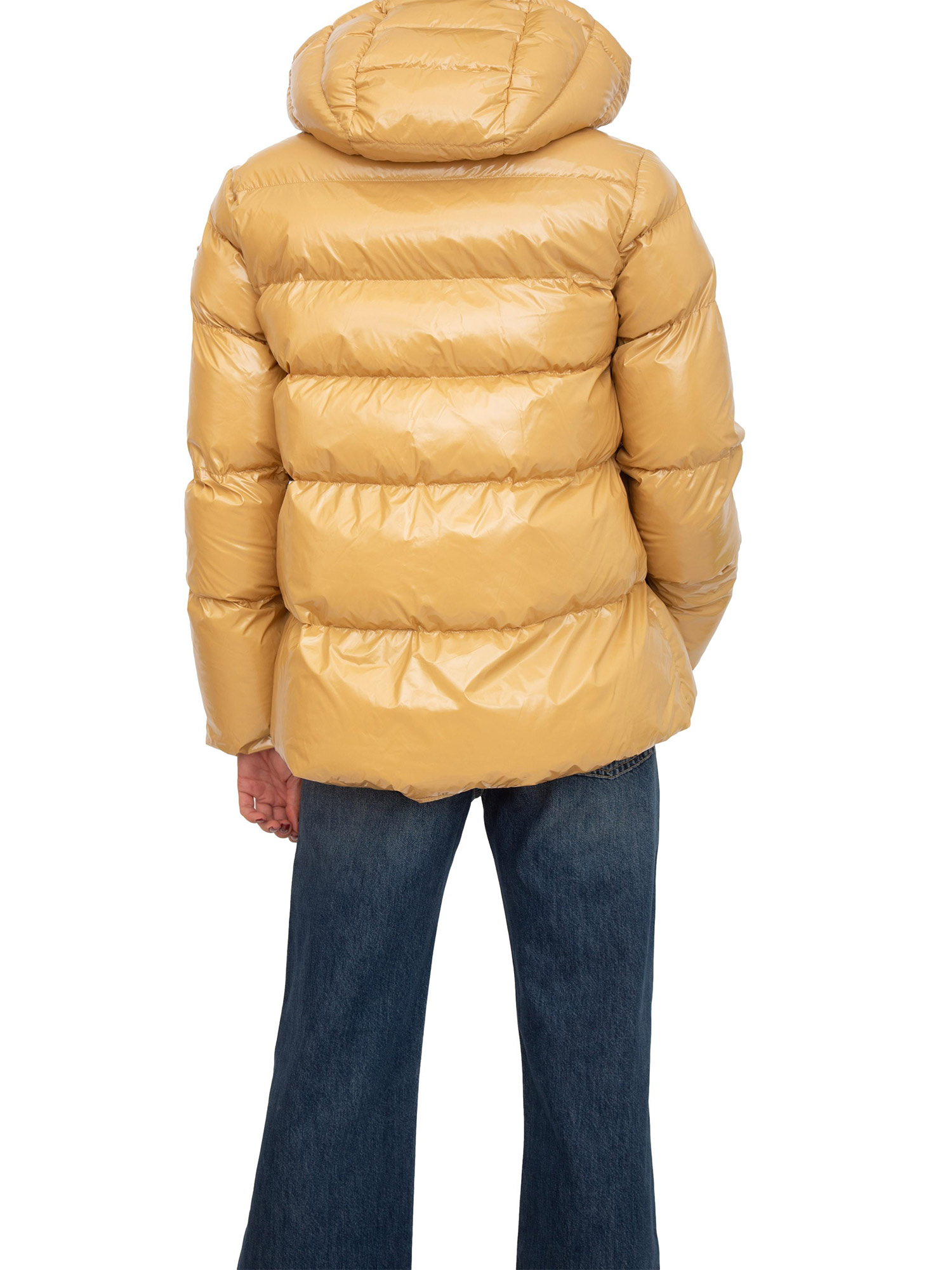 Piumino Pinko in crystal nylon lucido beige con cappuccio