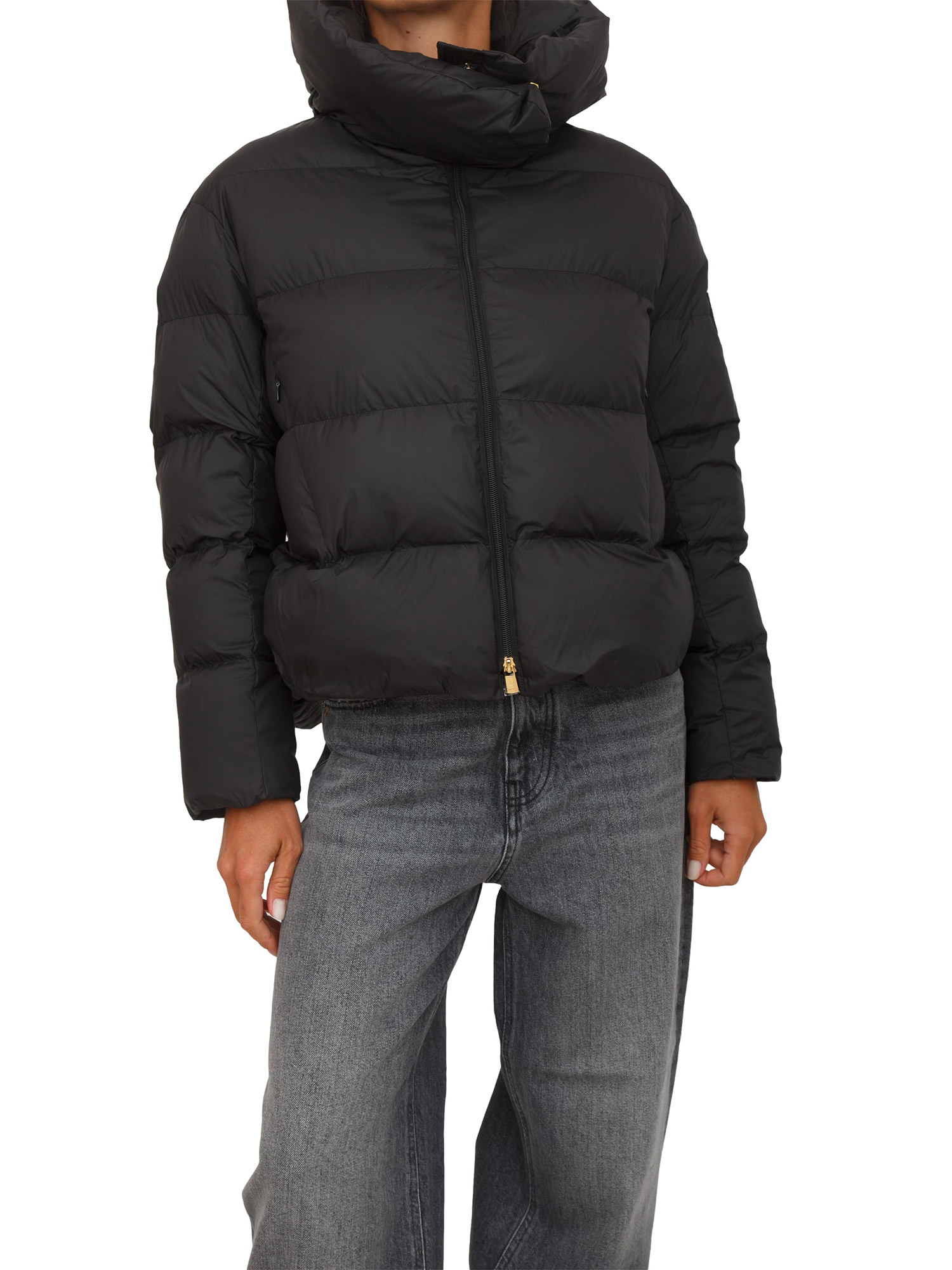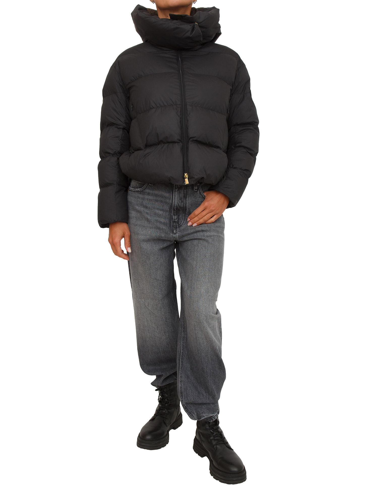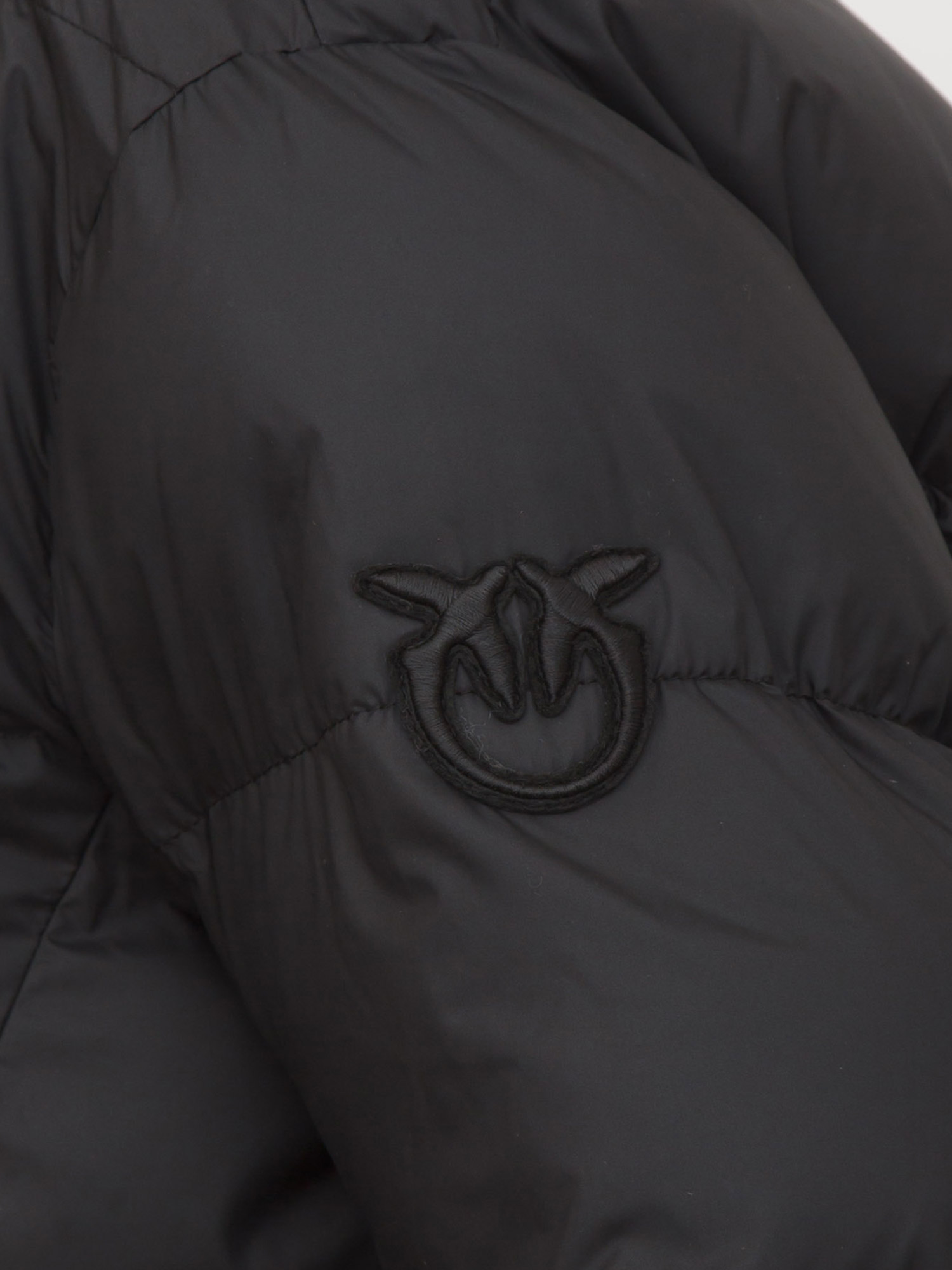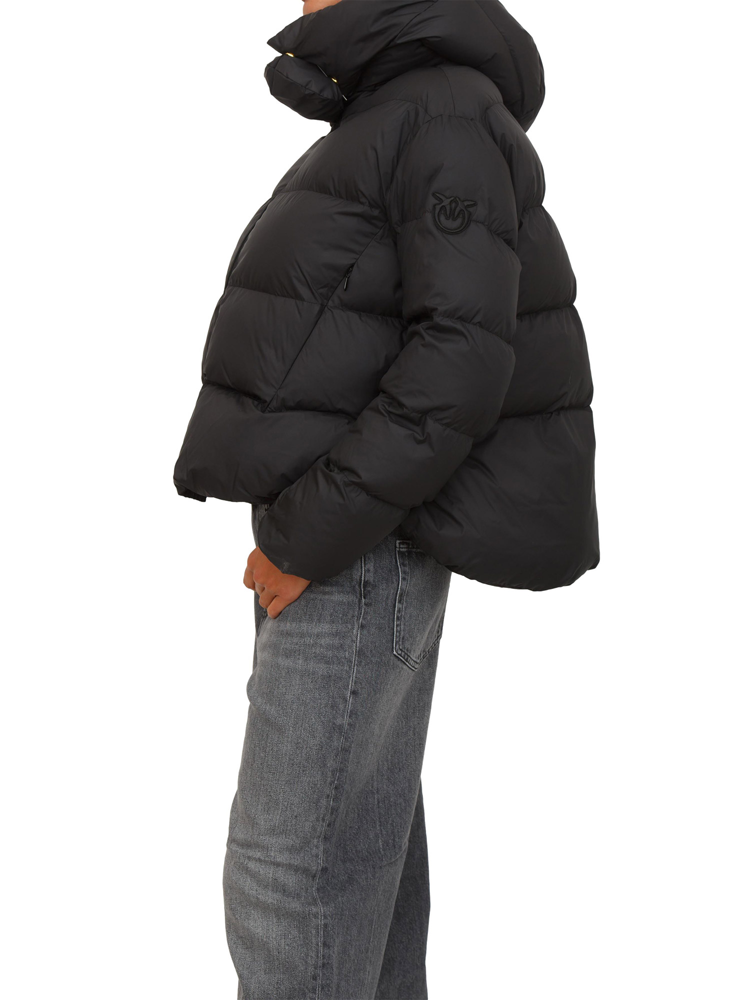 Brand: PINKOPiumino corto Pinko realizzato in tela tecnica con finishing matte opaco e trapuntato con motivo orizzontale. Modello con collo ampio, cappuccio avvolgente, chiusura zip doppio cursore e comode tasche verticali con zip invisibile. La modella è alta 1.72 e indossa la taglia XS.