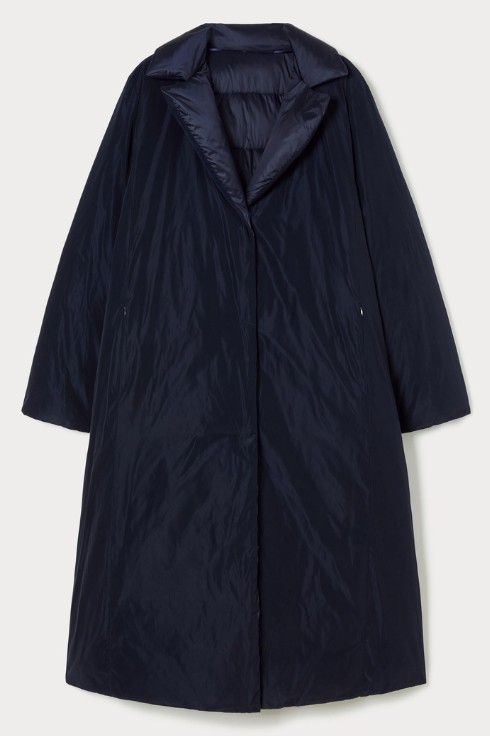 Brand: PERSONA BY MARINA RINALDIDoppio styling per il piumino Tequila di Marina Rinaldi realizzato in taffetà da un lato e nylon cangiante dall'altro. Design a cappotto perfetto anche per le occasioni formali. Linea semiaderente, collo con revers, tasche con zip e chiusura con bottoni automatici.