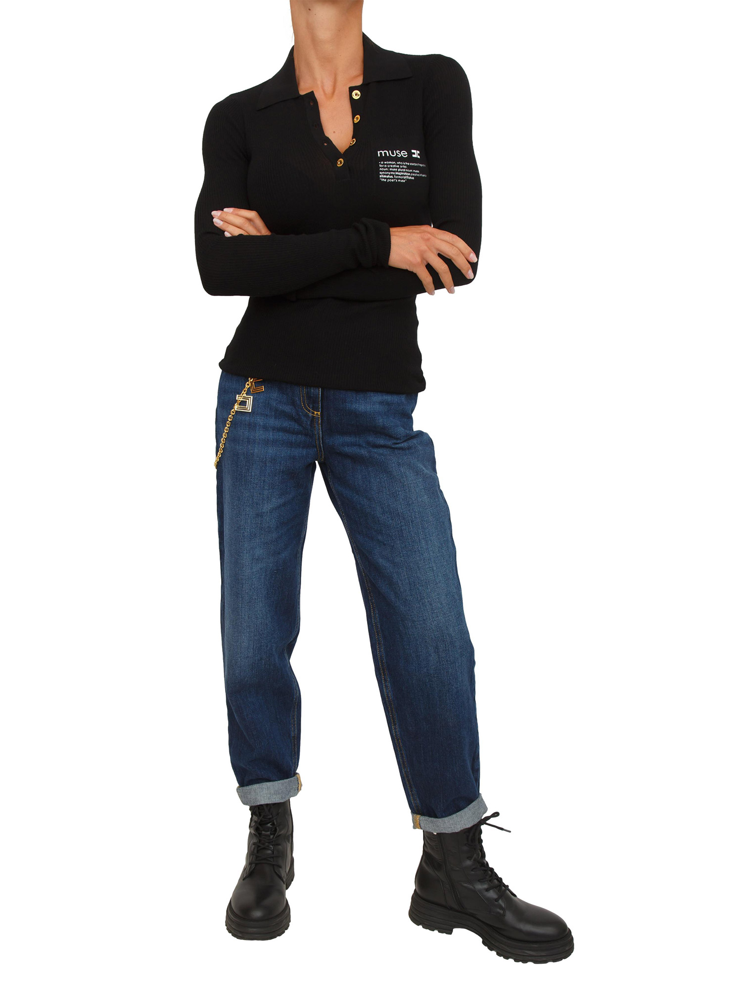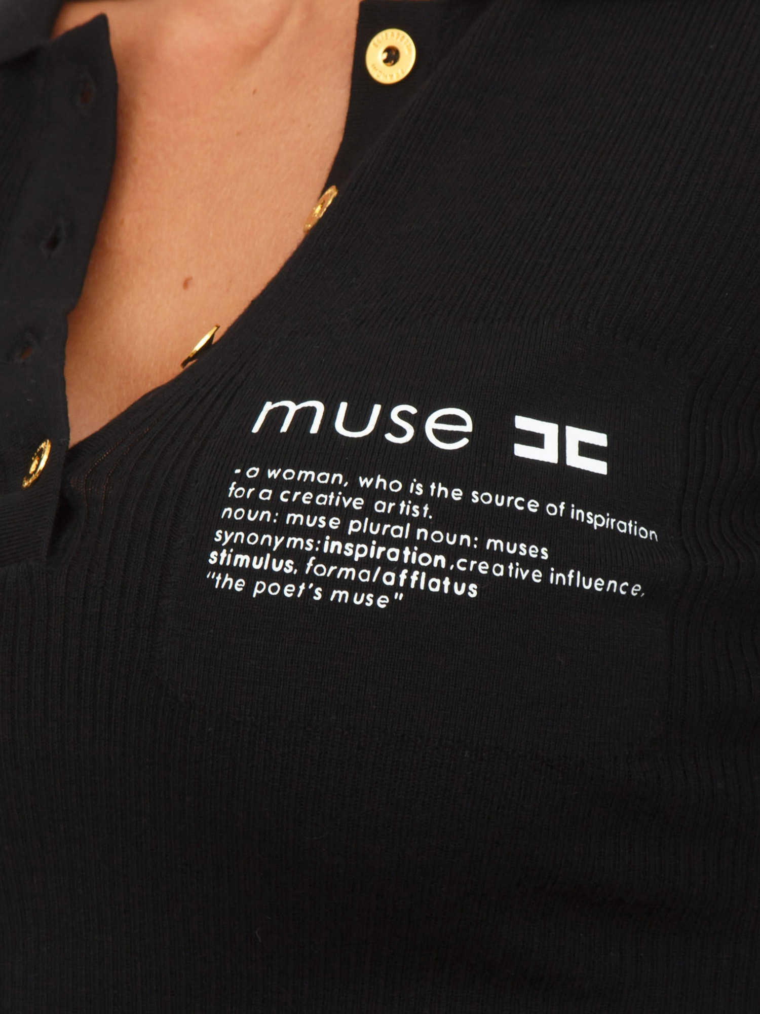 Polo Elisabetta Franchi in maglia nera con stampa lettering