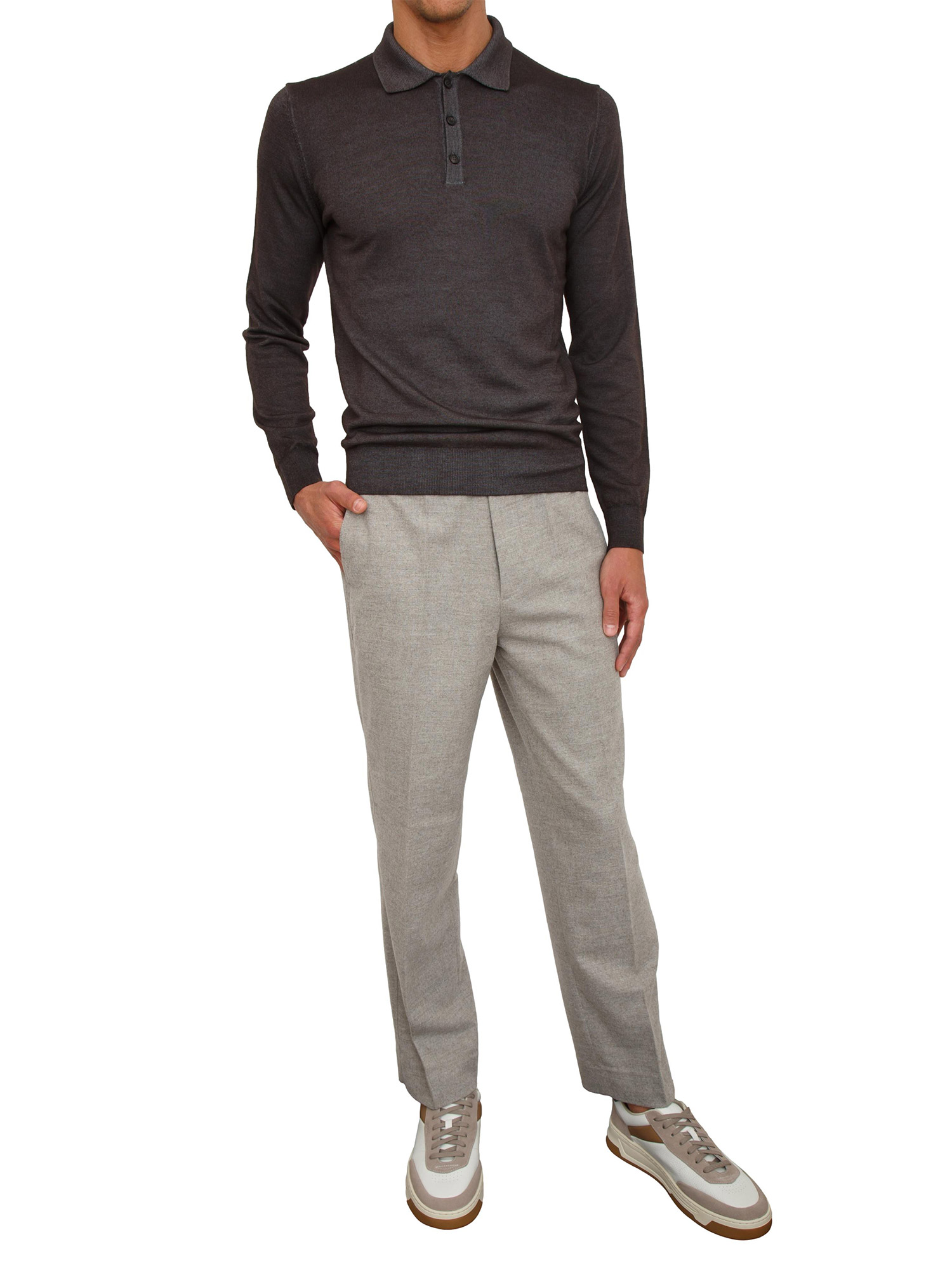 Polo maglia manica lunga Aiace Galassi in pura lana grigia