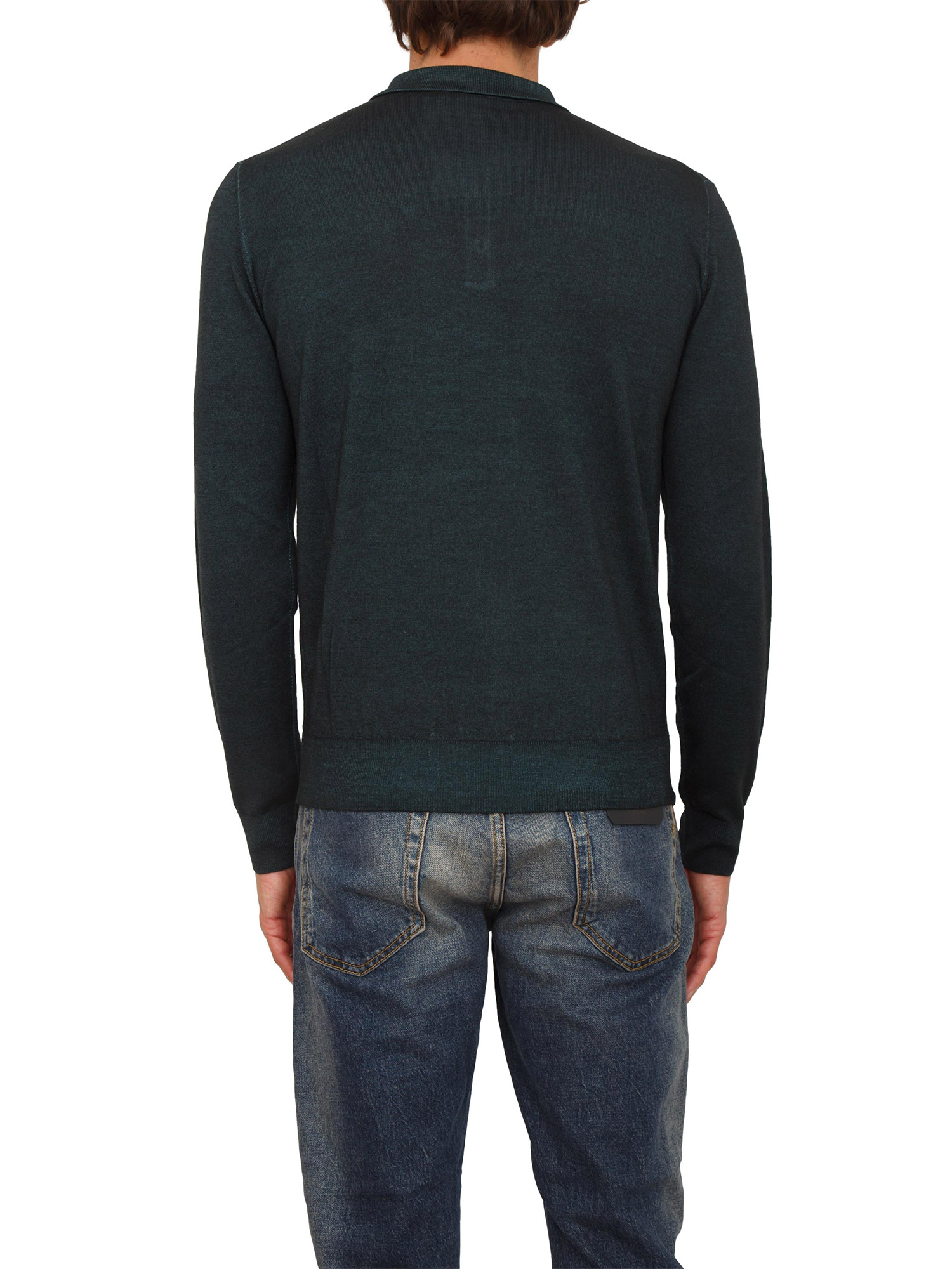 Polo maglia manica lunga Aiace Galassi in pura lana verde