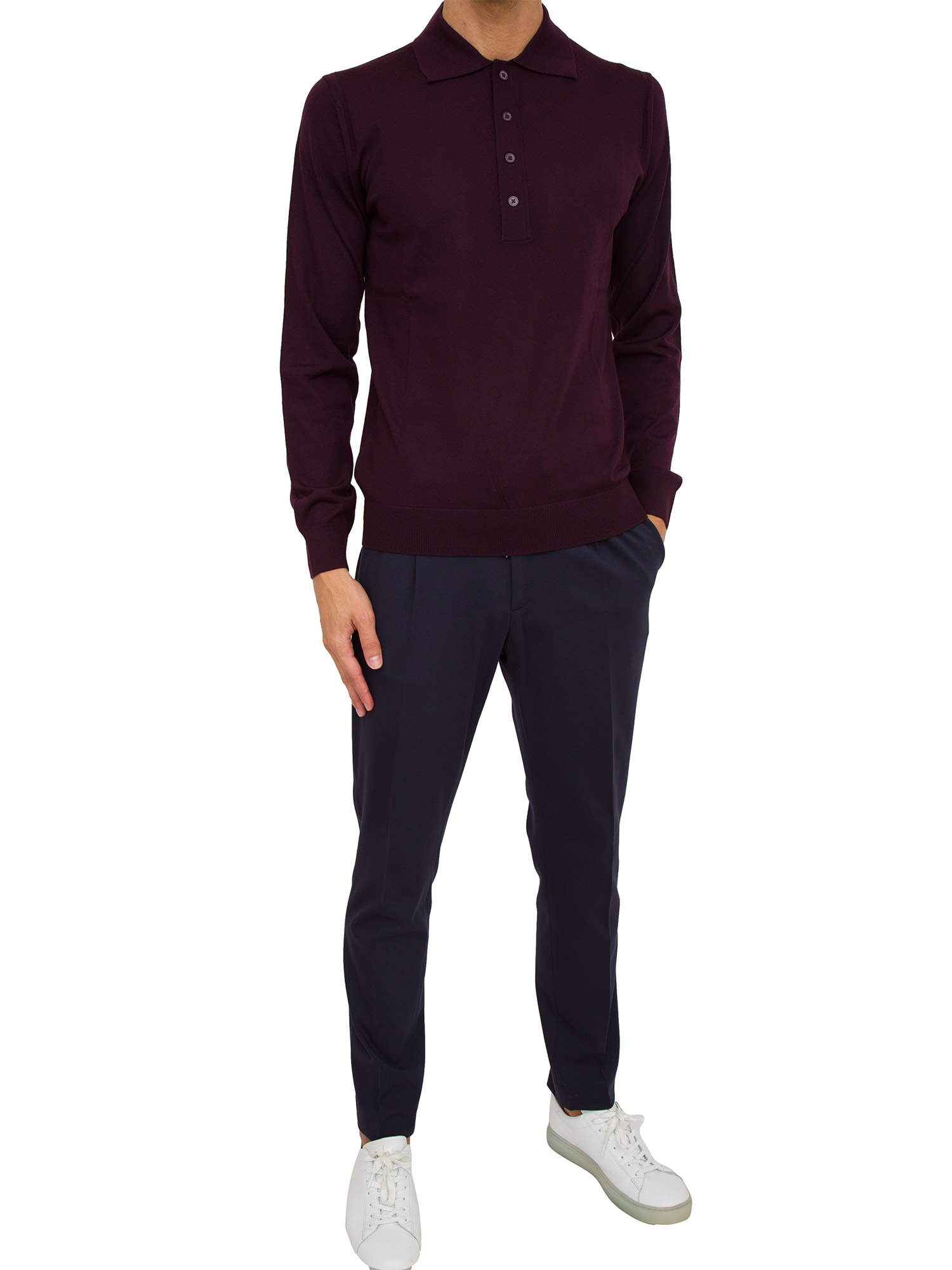 Brand: PAOLO PECORAMaglia a polo Paolo Pecora realizzata in lana merino extrafine, bottoni in madreperla e collo fondo e polsi a coste.