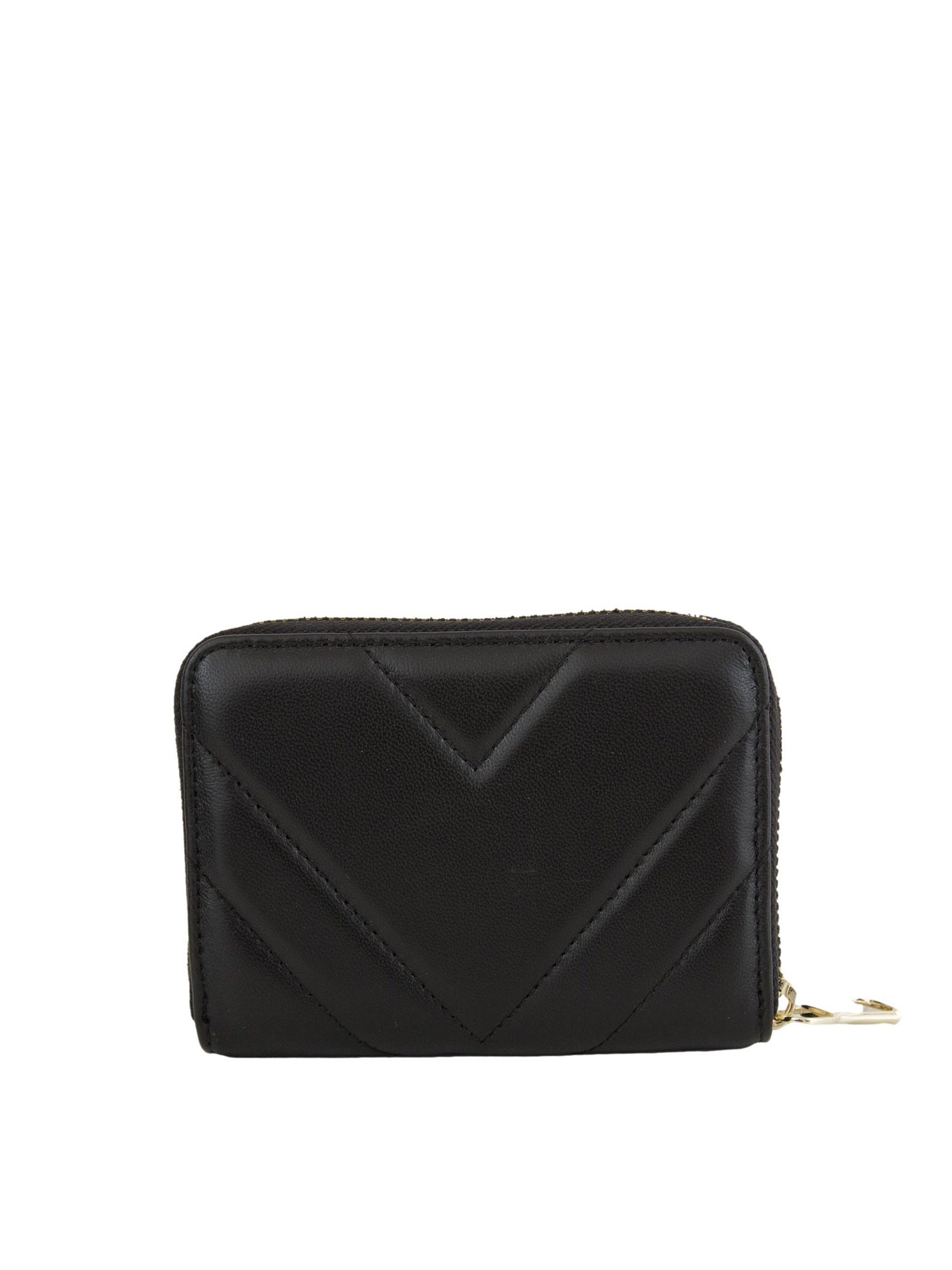 Il portafoglio in pelle di vitello liscia con cuciture e chiusura zip firmato Patrizia Pepe è un assoluto must have: funzionale e raffinato, è dotato di tasca interna e porta carte di credito. La parte anteriore è decorata con la Fly light gold. Dimensioni: 12,5 x 8 x 2 cm