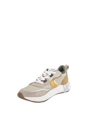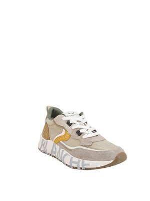 Brand: VOILE BLANCHESneaker Voile Blanche con tomaia in tessuto abbinato a dettagli in suede a contrasto. Lo slash laterale e il topponcino sono in pelle, mentre il toppone presenta un lettering con effetto tridimensionale. Suola in gomma ultra leggera sagomata con serigrafia laterale per un effetto scenografico.