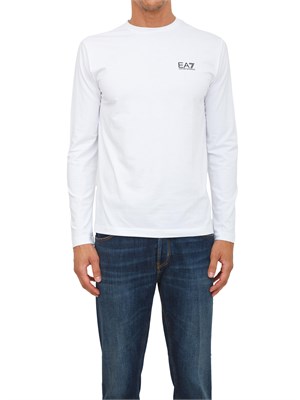 Brand: EA7 EMPORIO ARMANIT-shirt a manica lunga da uomo EA7 realizzata in cotone stretch con girocollo e logo in gomma applicato lato cuore.