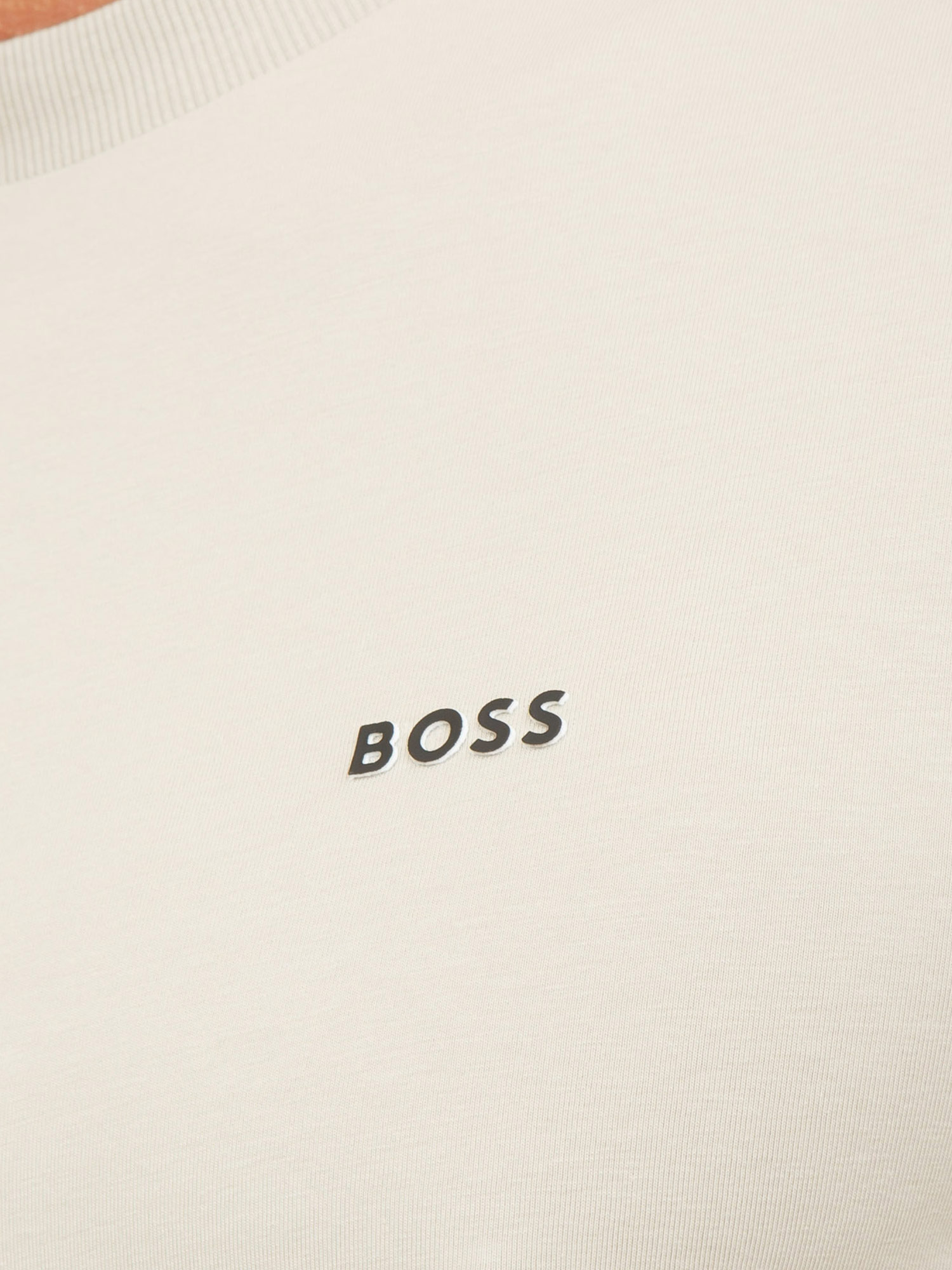 Brand: BOSSRealizzata in cotone con tessuto elasticizzato, questa T-shirt BOSS Uomo assicura il massimo comfort e flessibilità. Straight fit, logo a contrasto sul petto e maniche corte. Il modello è alto 1.90m e indossa la taglia M.