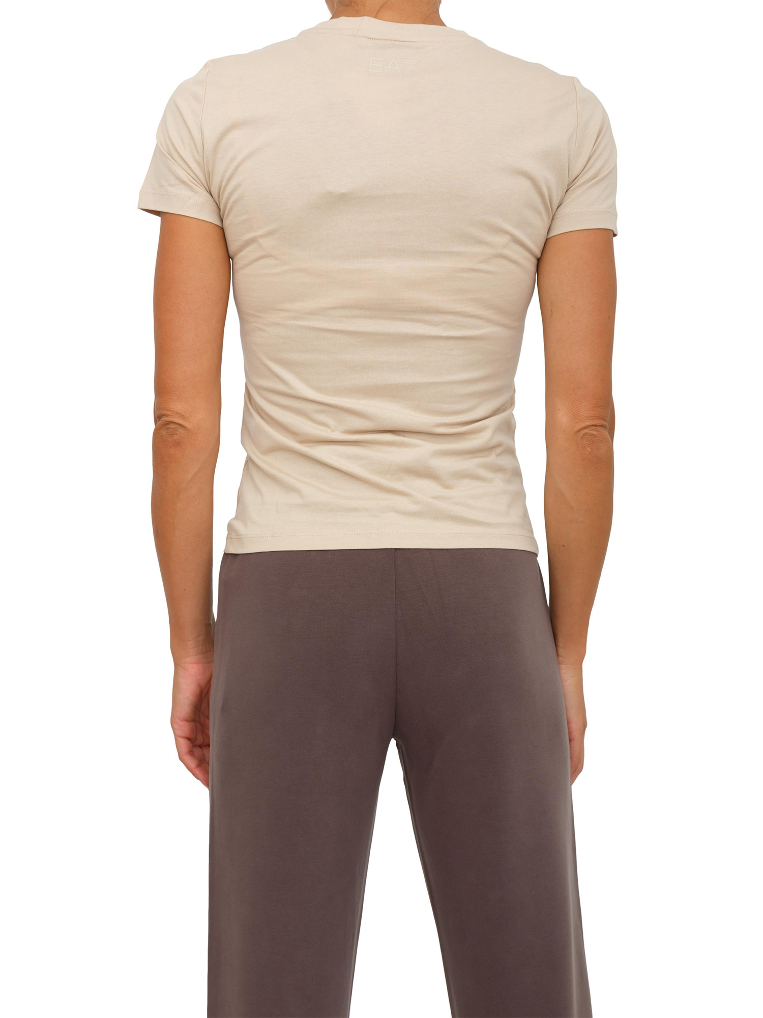 T-shirt donna EA7 Emporio Armani in cotone e modal beige con logo a micro borchie dorate