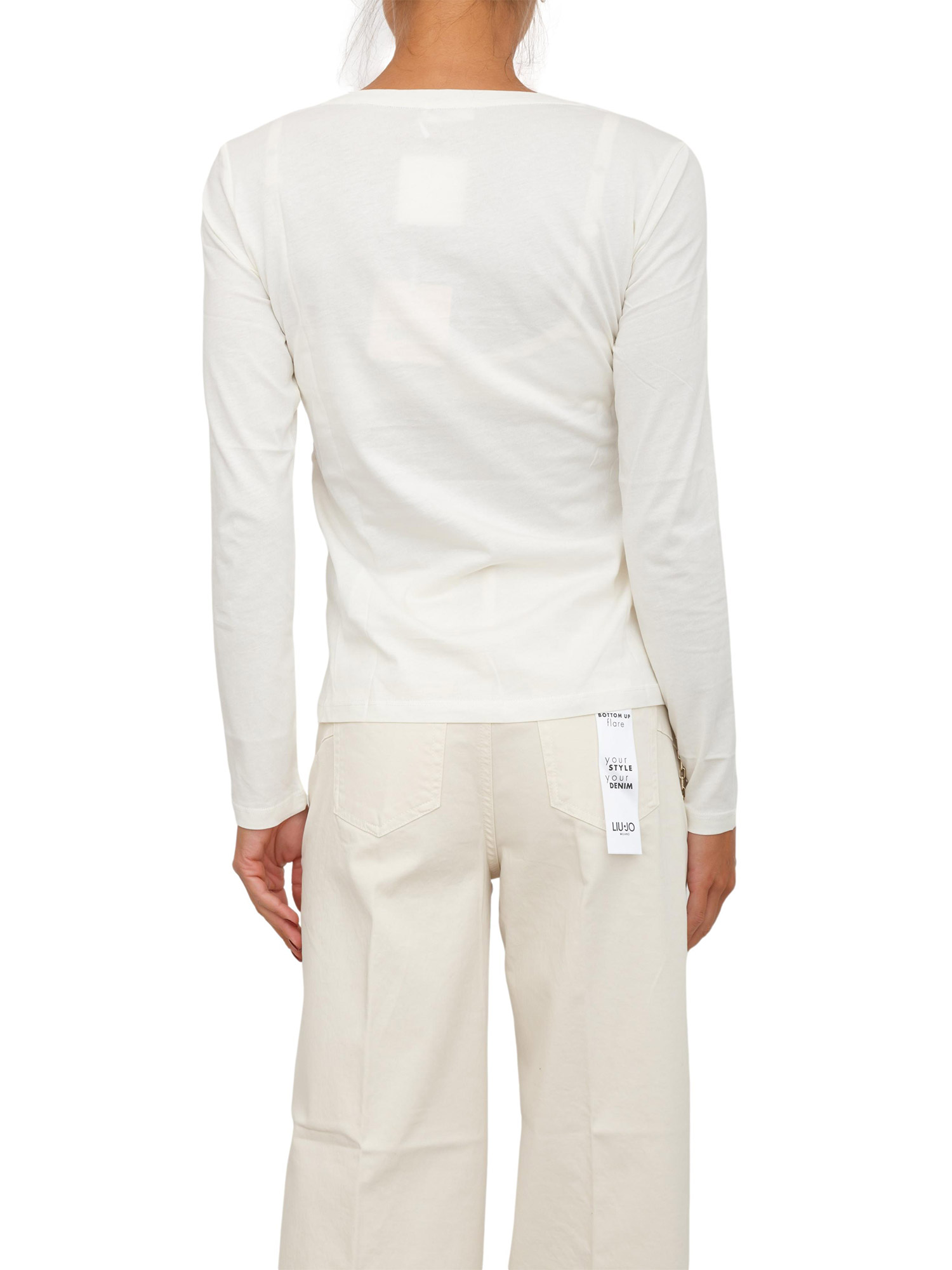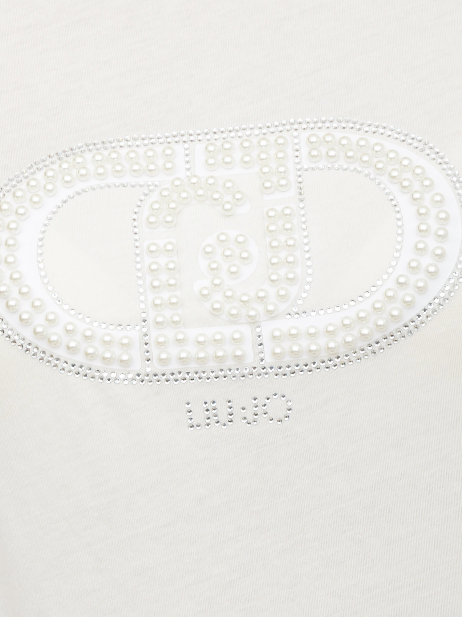 T-shirt Liu Jo donna in cotone avorio con logo perle e strass