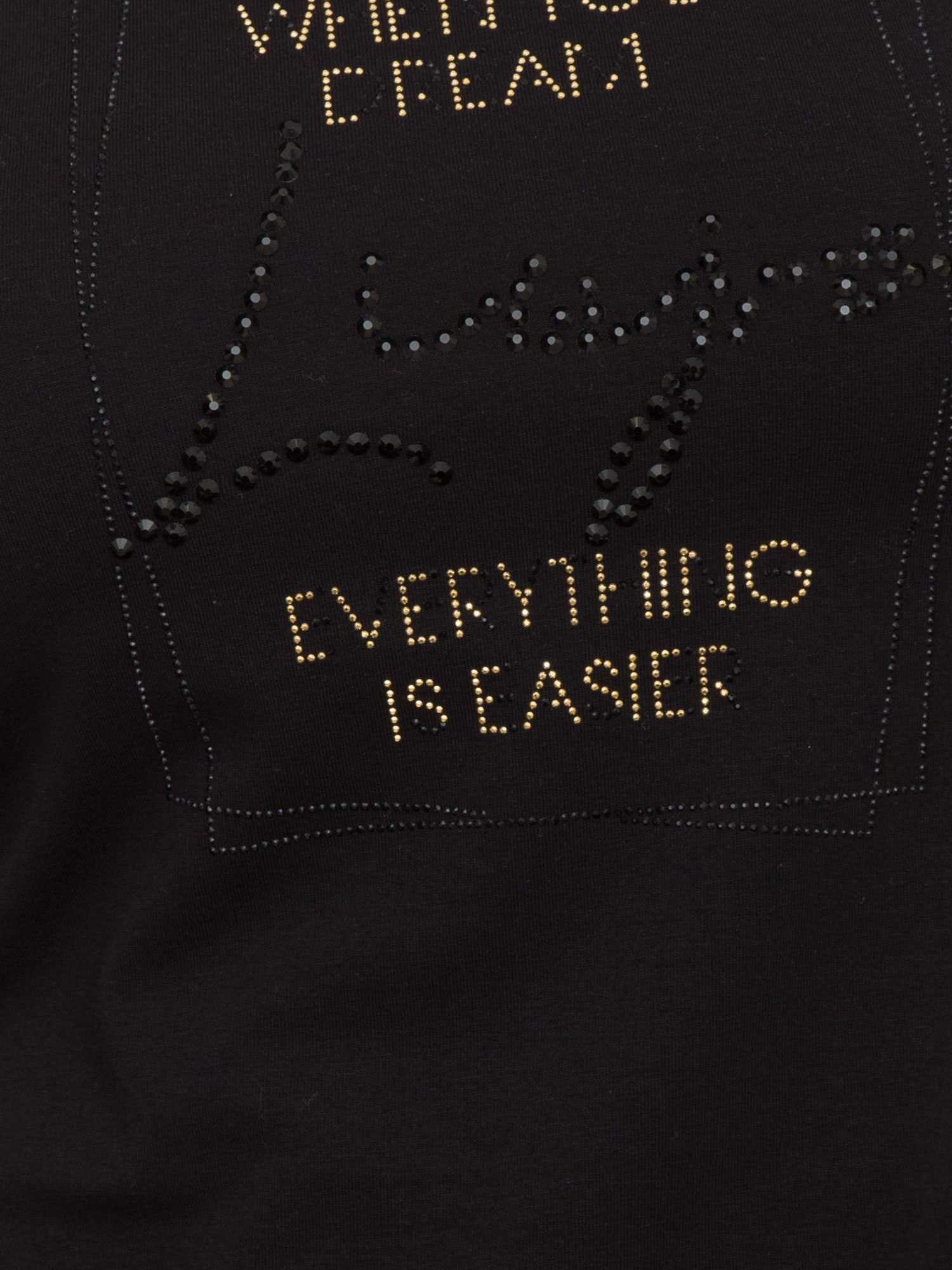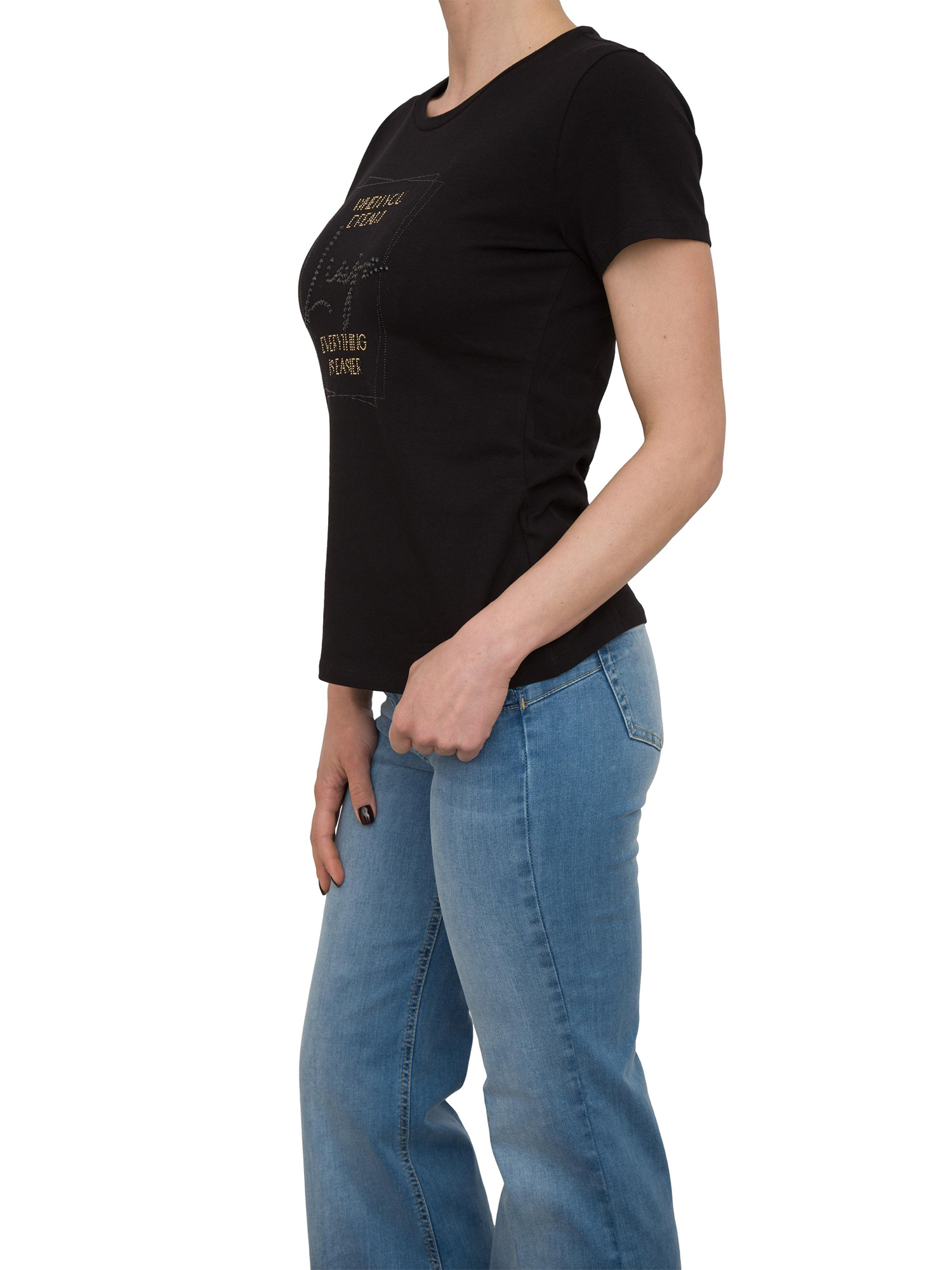 Brand: LIU JOCon una luminosa tonalità nera questa t-shirt Liu Jo donna in jersey di cotone celebra la leggerezza dell[and]rsquo;estate. Il maxi logo spicca con tono deciso sul modello essenziale e versatile, per vestire di glam i tuoi momenti di svago.La modella è alta 1.72 e indossa la taglia S.
