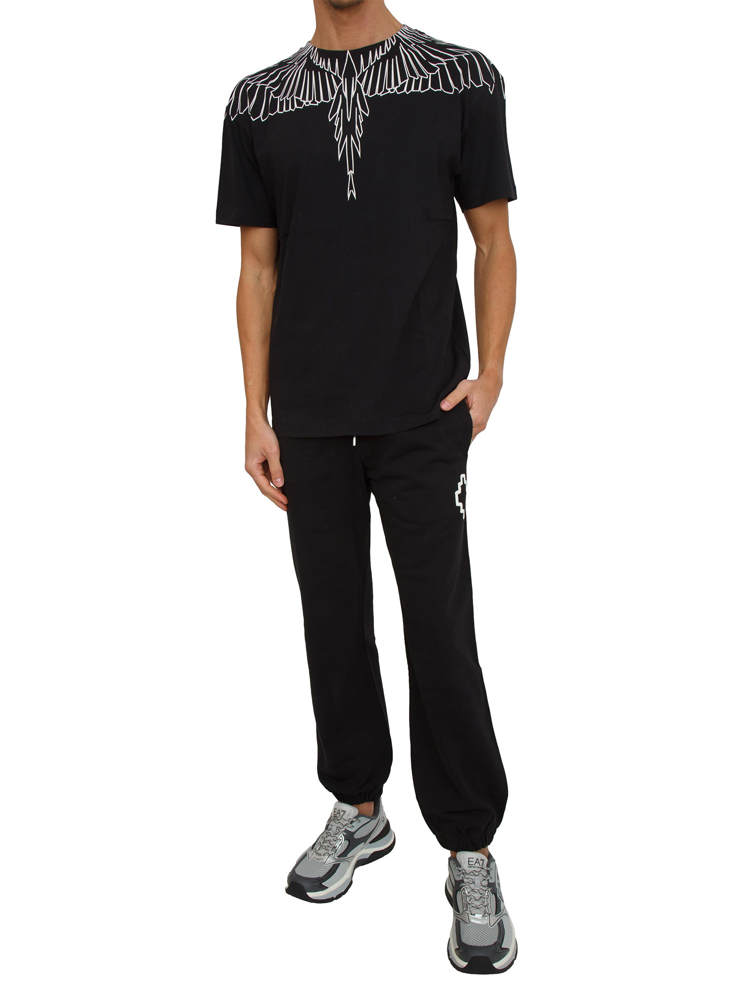T-shirt uomo County of Milan in cotone nero con stampa aquila