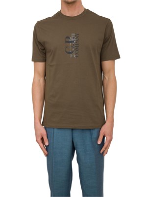 Brand: C.P. COMPANYT-shirt uomo verde C.P. Company realizzata in jersey di cotone 30/1 con vestibilità regular e logo stampato sul petto. Il modello è alto 1.90 cm e indossa la taglia L.