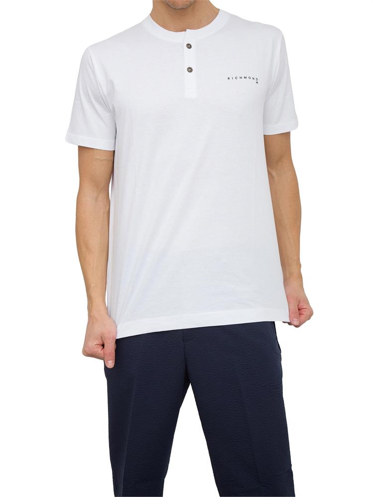 Brand: RICHMOND XT-shirt girocollo Richmond X realizzata in cotone con maniche corte , logo sul davanti e collo con bottoni.Il modello è alto 1.90m e indossa la taglia L.