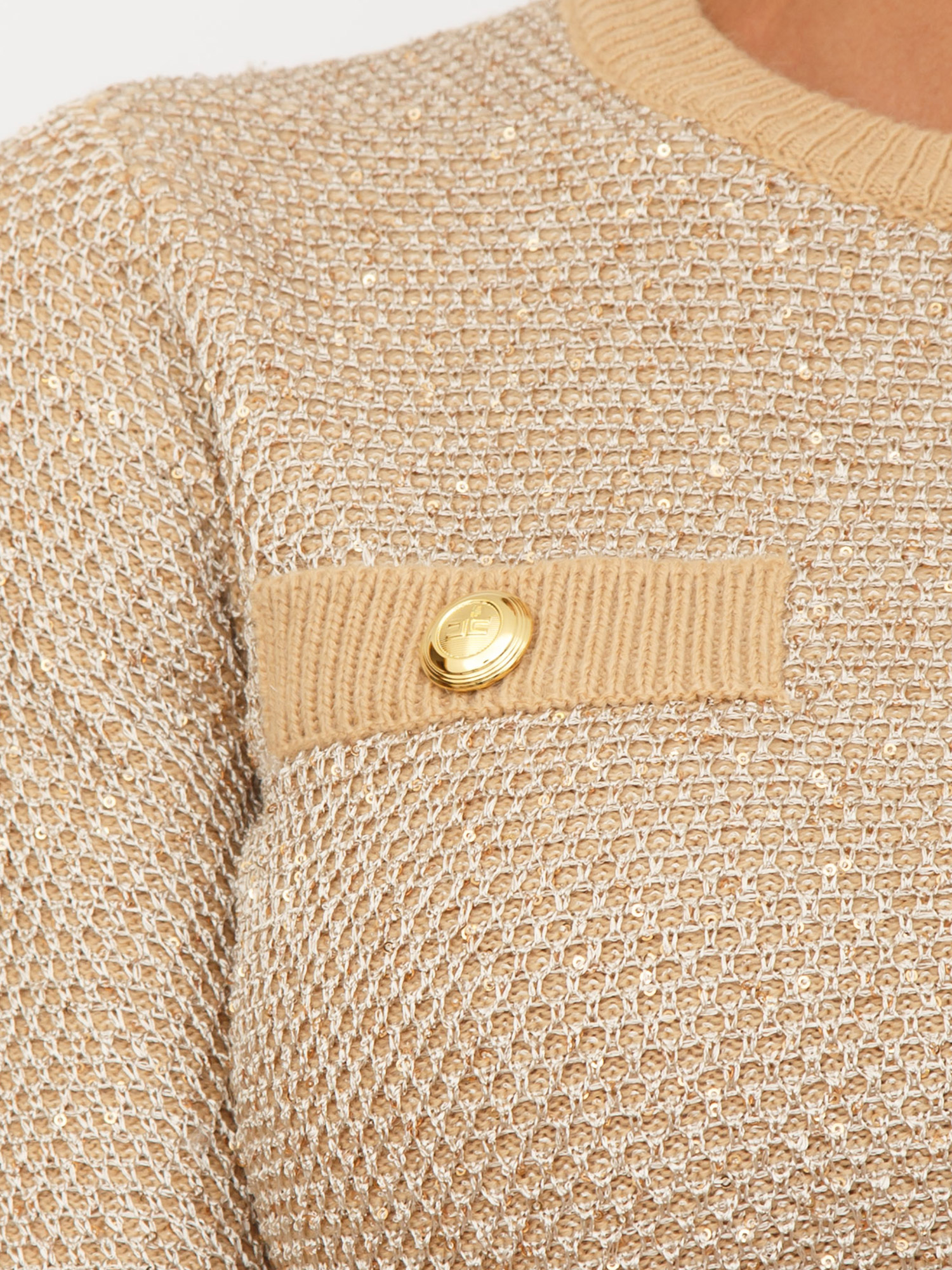 Top Elisabetta Franchi in maglia cammello con paillettes