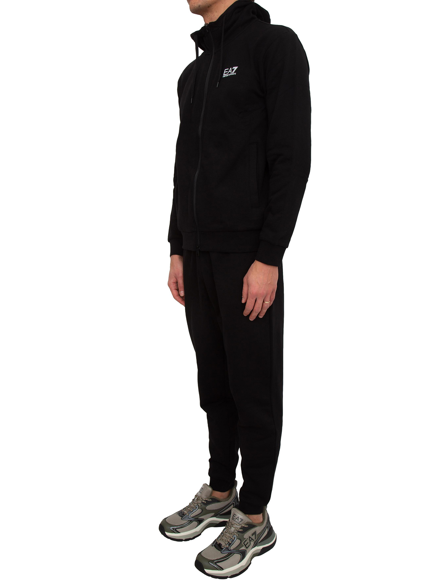 EA7 EMPORIO ARMANI Tuta sportiva nera EA7 con cappuccio Core Identity in misto cotone