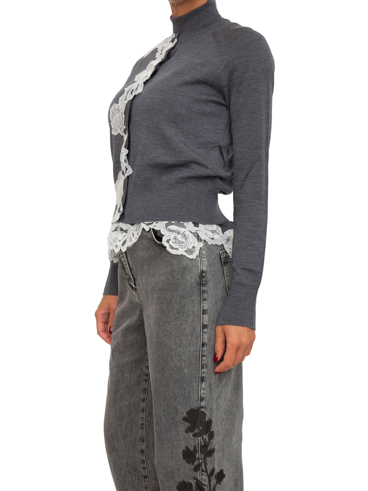 Twin-set Blugirl cardigan+lupetto in lana grigia con pizzo