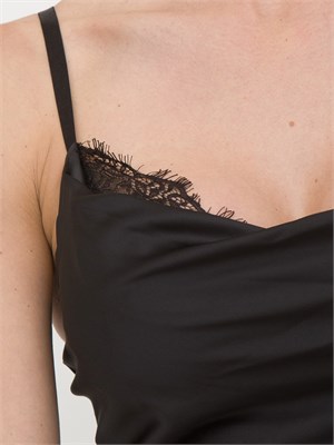 Abito lungo Guess Jeans in raso stretch nero con scollo con pizzo