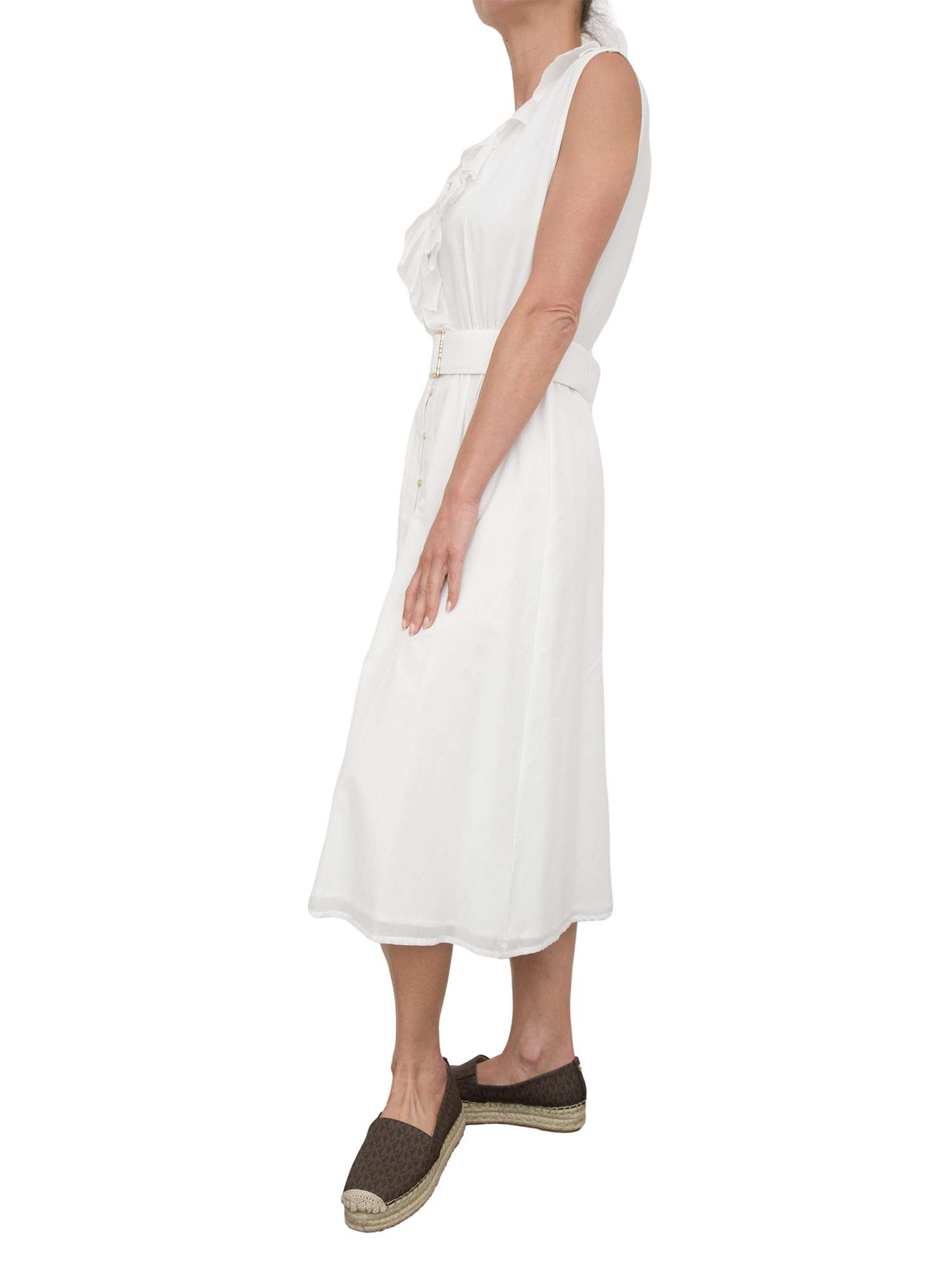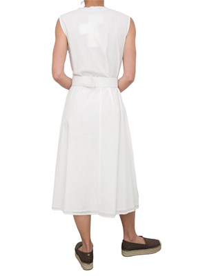 Abito midi Kocca in cotone bianco con voulant, scollo a V e cintura in vita